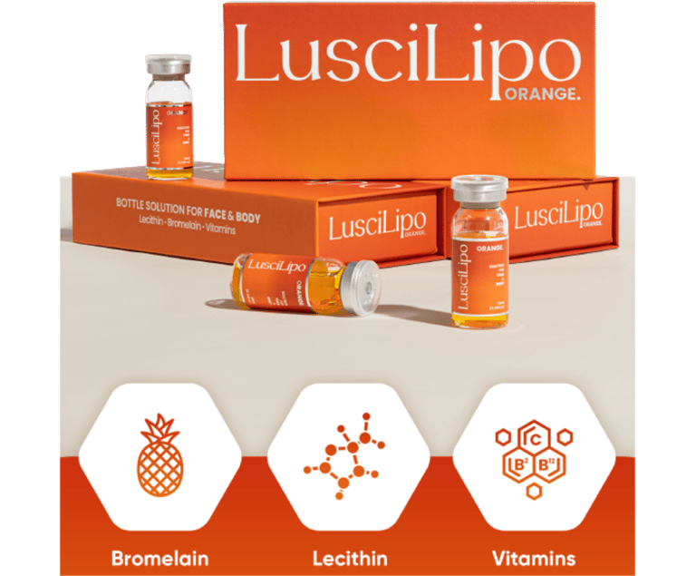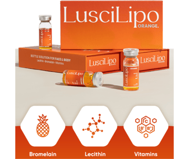 • Luscilipo Orange contains Phosphatidylcholine (PPC) and Deoxycholic acid, two powerful fat-dissolving agents.